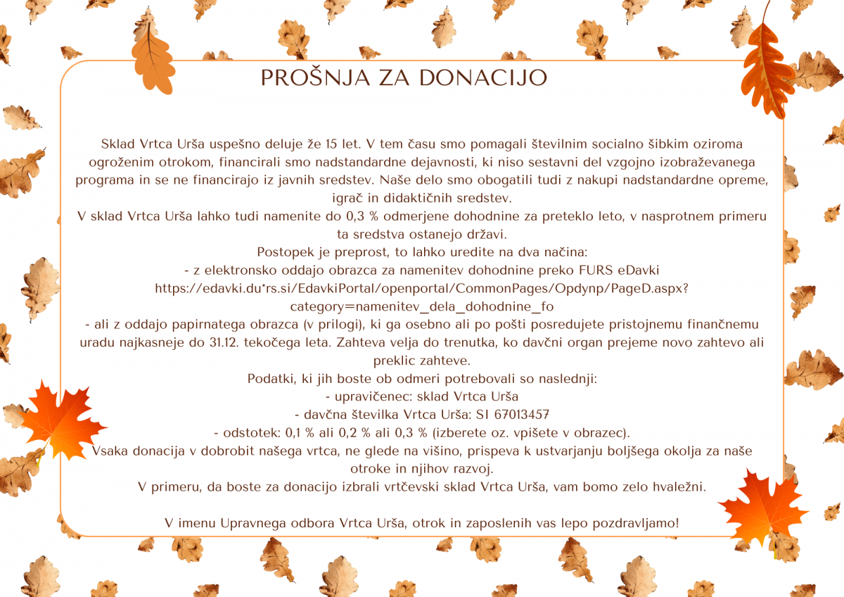 Davčna številka: SI67013457, e-mail: ursa@vrtec-ursa.si