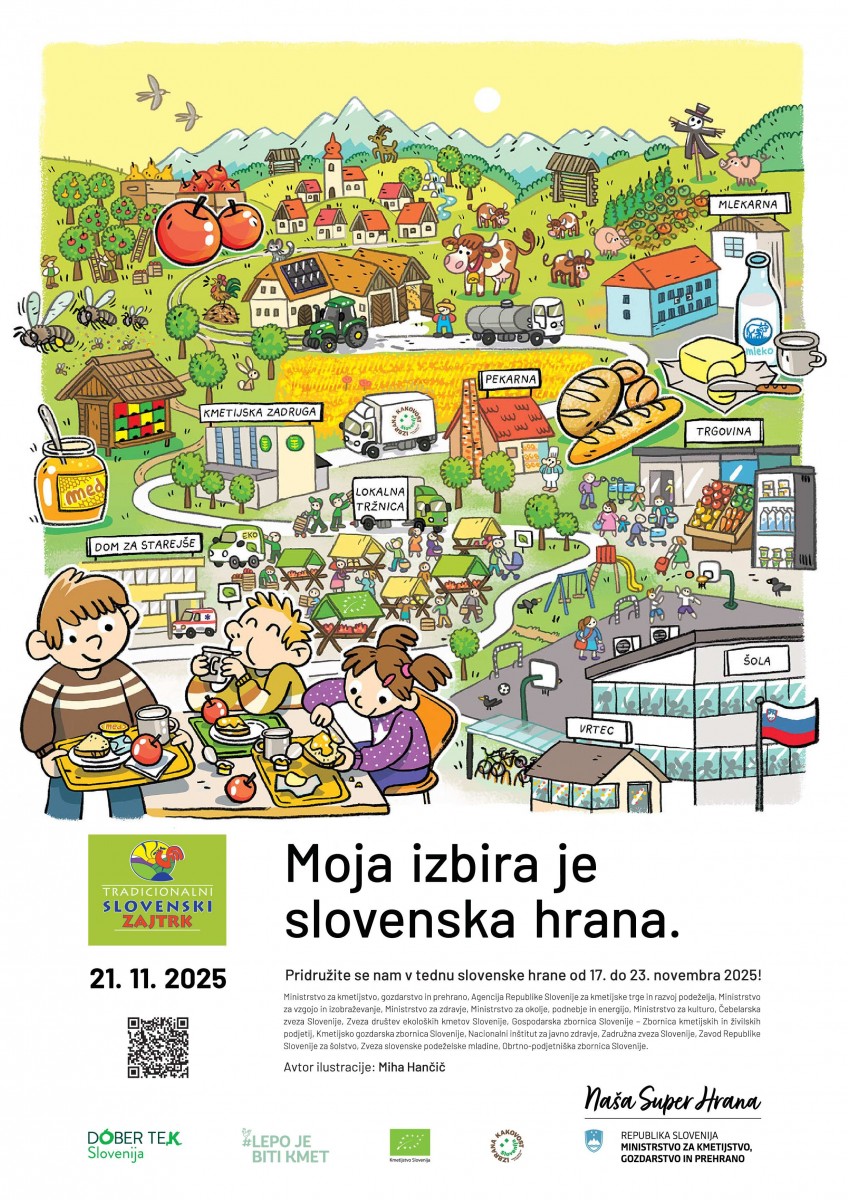 V petek, 21.11.2025 bomo v Vrtcu Urša v vseh naših enotah pripravili TRADICIONALNI SLOVENSKI ZAJTRK z letošnjim sloganom »Moja izbira je slovenska hrana«.